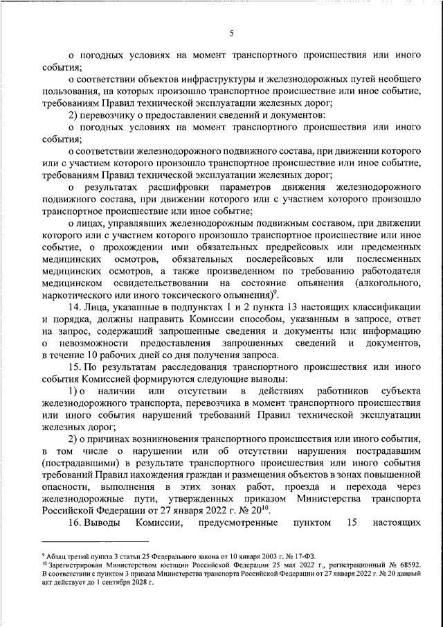"ОБ УСТАНОВЛЕНИИ КЛАССИФИКАЦИИ, ПОРЯДКА РАССЛЕДОВАНИЯ И УЧЕТА ТРАНСПОРТНЫХ ПРОИСШЕСТВИЙ И ИНЫХ СОБЫТИЙ, НЕ СВЯЗАННЫХ С НАРУШЕНИЕМ ПРАВИЛ БЕЗОПАСНОСТИ ДВИЖЕНИЯ И ЭКСПЛУАТАЦИИ ЖЕЛЕЗНОДОРОЖНОГО ТРАНСПОРТА, В ТОМ ЧИСЛЕ ВЫСОКОСКОРОСТНОГО ЖЕЛЕЗНОДОРОЖНОГО ТРАНСПОРТА, И С ОСУЩЕСТВЛЕНИЕМ ПРОИЗВОДСТВЕННОЙ ДЕЯТЕЛЬНОСТИ, ПРЕДУСМОТРЕННОЙ ТРУДОВЫМ ЗАКОНОДАТЕЛЬСТВОМ РОССИЙСКОЙ ФЕДЕРАЦИИ"