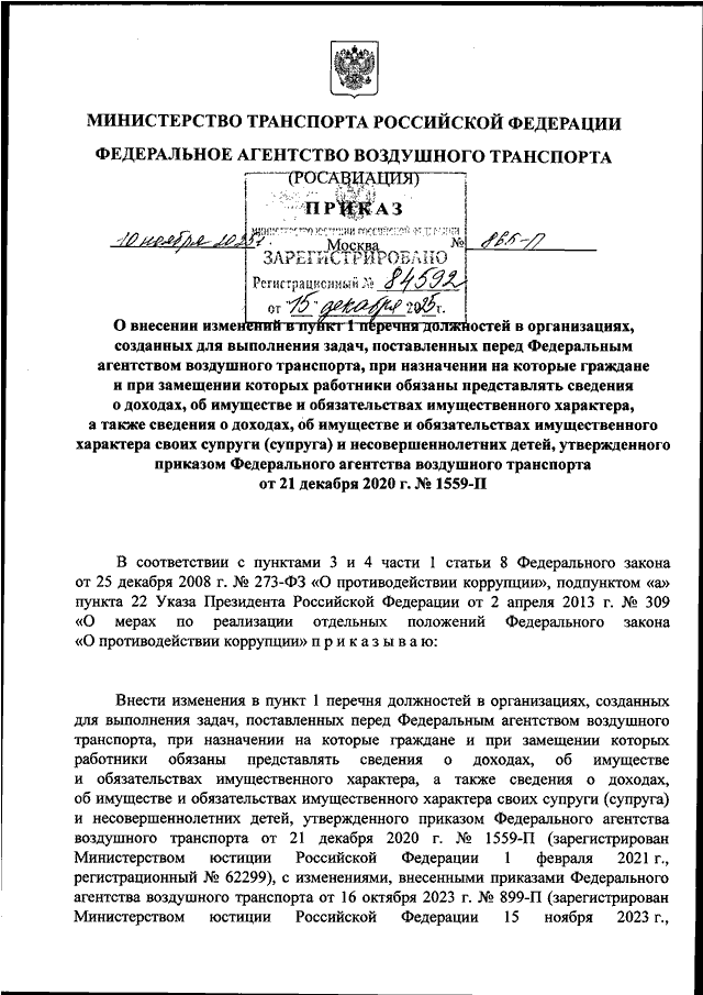 АГЕНТСТВА ВОЗДУШНОГО ТРАНСПОРТА ОТ 21 ДЕКАБРЯ 2020 Г. N 1559-П"