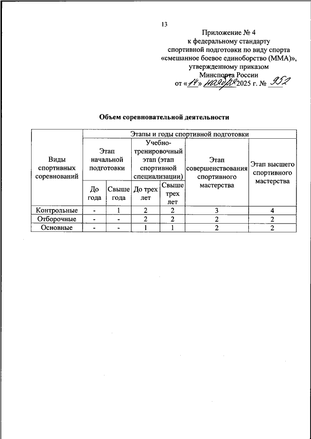 ПРИКАЗ Минспорта РФ от 14.11.2025 N 952