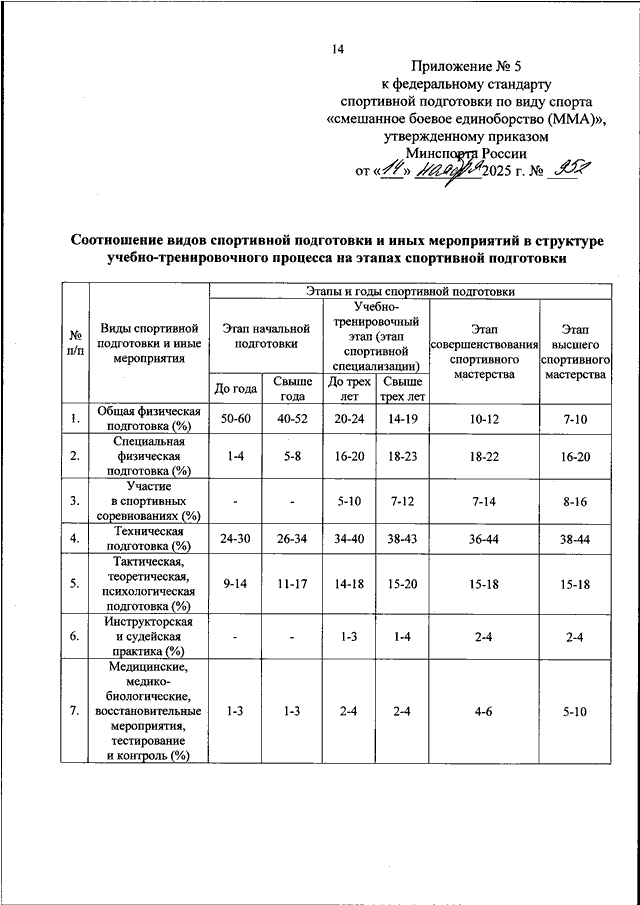 ПРИКАЗ Минспорта РФ от 14.11.2025 N 952