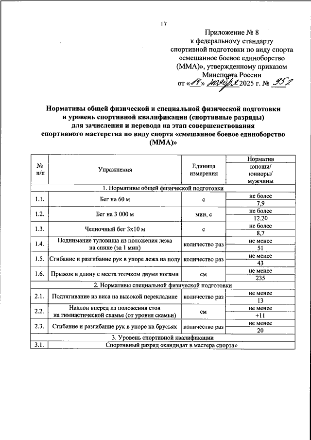 ПРИКАЗ Минспорта РФ от 14.11.2025 N 952