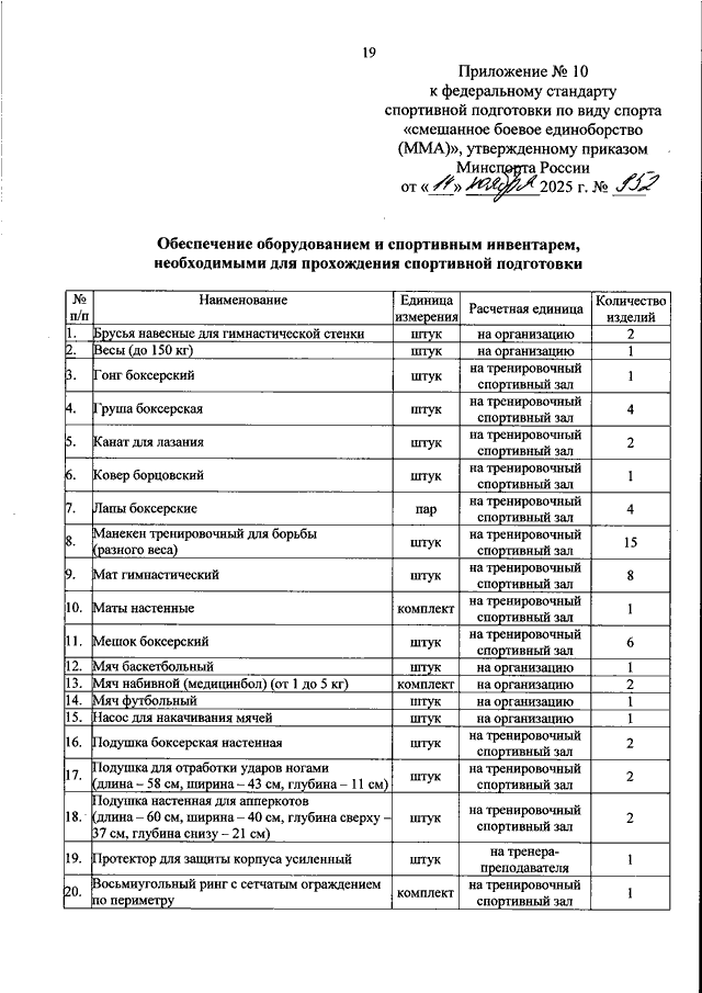 ПРИКАЗ Минспорта РФ от 14.11.2025 N 952
