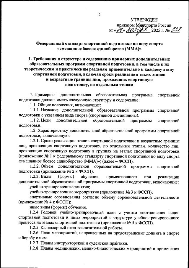 ПРИКАЗ Минспорта РФ от 14.11.2025 N 952