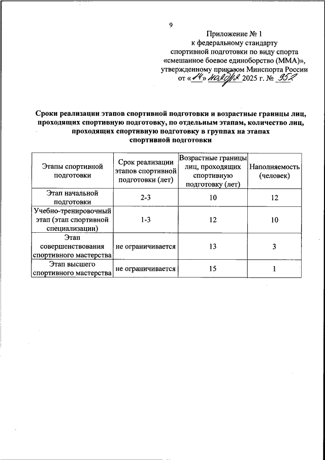 ПРИКАЗ Минспорта РФ от 14.11.2025 N 952