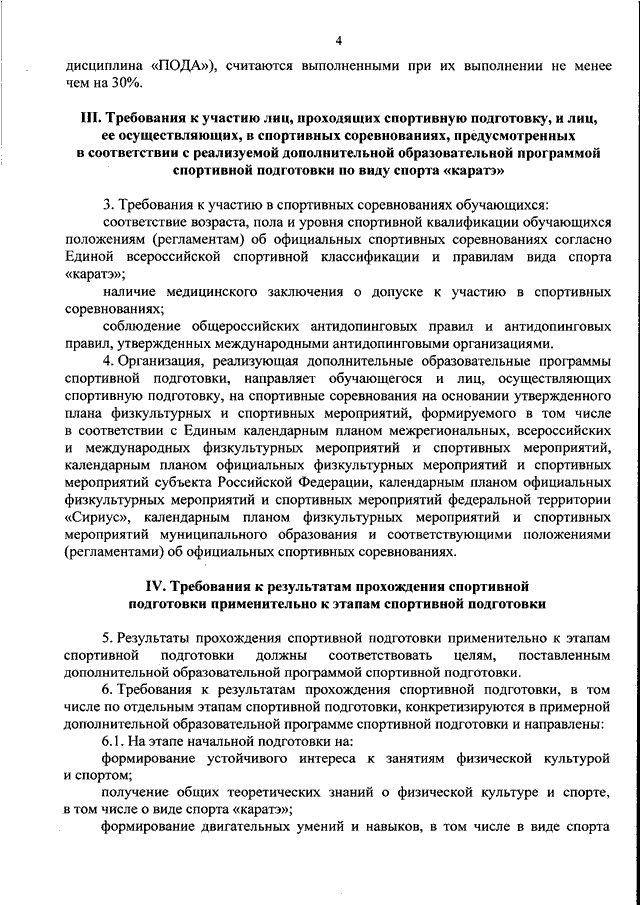 "ОБ УТВЕРЖДЕНИИ ФЕДЕРАЛЬНОГО СТАНДАРТА СПОРТИВНОЙ ПОДГОТОВКИ ПО ВИДУ СПОРТА "КАРАТЭ"