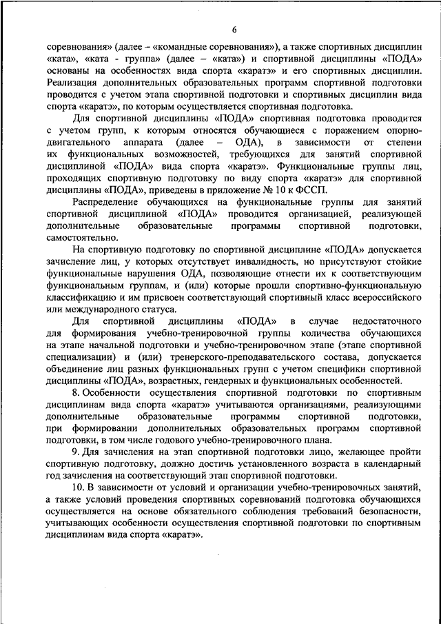 "ОБ УТВЕРЖДЕНИИ ФЕДЕРАЛЬНОГО СТАНДАРТА СПОРТИВНОЙ ПОДГОТОВКИ ПО ВИДУ СПОРТА "КАРАТЭ"
