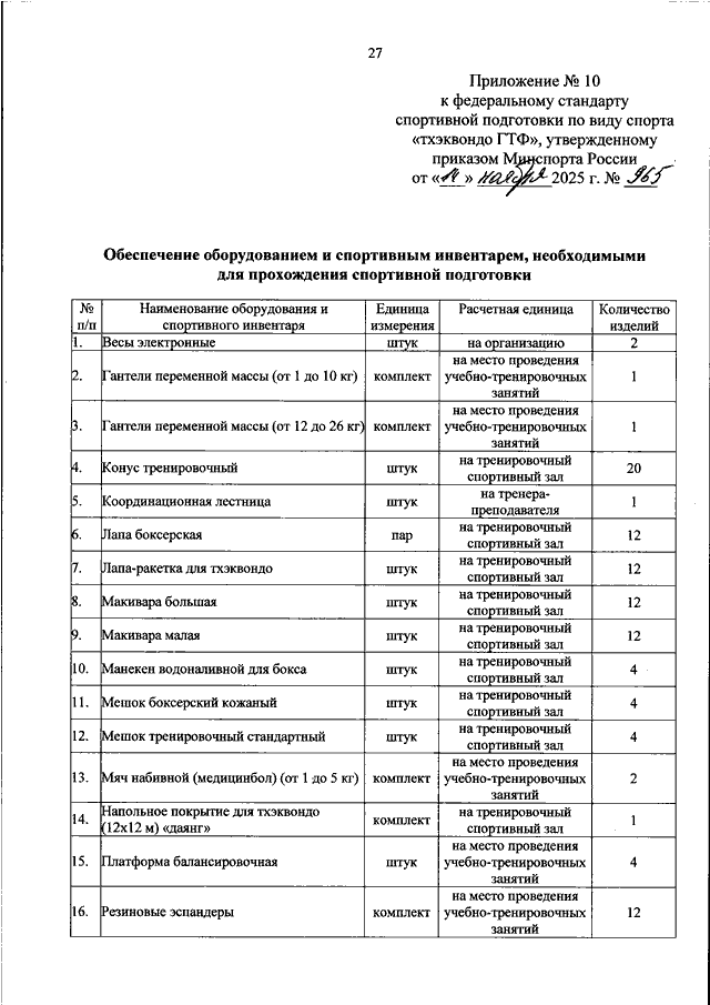 ПРИКАЗ Минспорта РФ от 14.11.2025 N 965