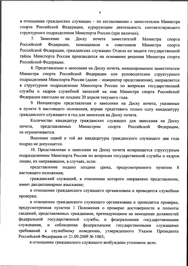 "О ДОСКЕ ПОЧЕТА МИНИСТЕРСТВА СПОРТА РОССИЙСКОЙ ФЕДЕРАЦИИ"