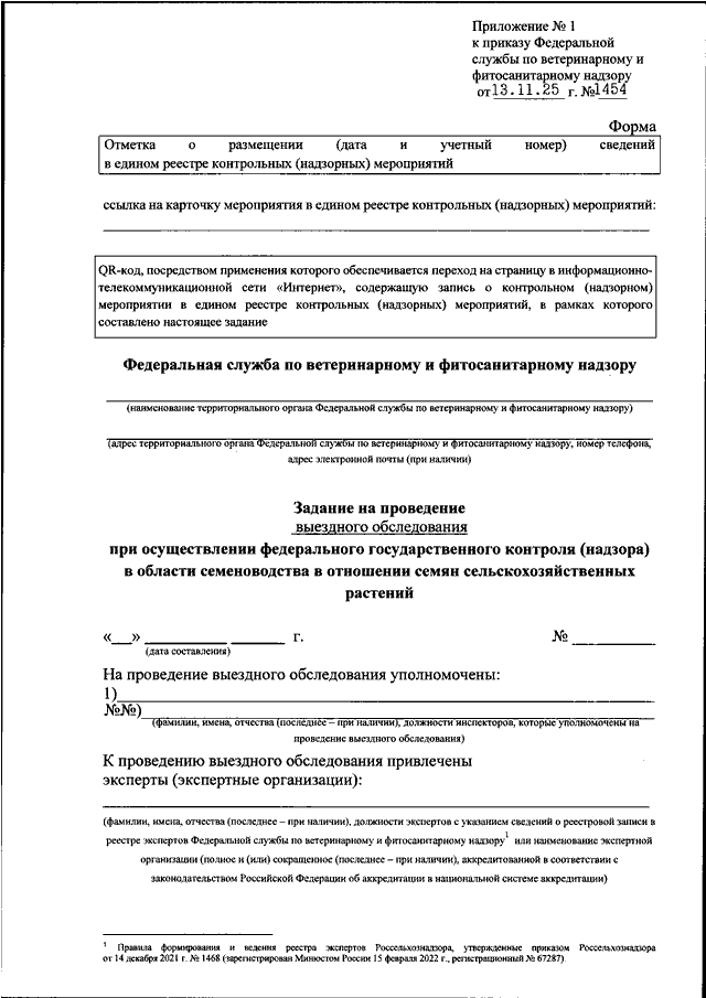 ПРИКАЗ Россельхознадзора от 13.11.2025 N 1454