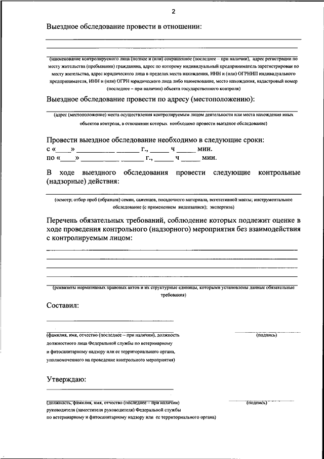 "ОБ УТВЕРЖДЕНИИ ФОРМ ЗАДАНИЙ НА ПРОВЕДЕНИЕ ВЫЕЗДНОГО ОБСЛЕДОВАНИЯ И НАБЛЮДЕНИЯ ЗА СОБЛЮДЕНИЕМ ОБЯЗАТЕЛЬНЫХ ТРЕБОВАНИЙ ПРИ ОСУЩЕСТВЛЕНИИ ФЕДЕРАЛЬНОГО ГОСУДАРСТВЕННОГО КОНТРОЛЯ (НАДЗОРА) В ОБЛАСТИ СЕМЕНОВОДСТВА В ОТНОШЕНИИ СЕМЯН СЕЛЬСКОХОЗЯЙСТВЕННЫХ РАСТЕНИЙ"