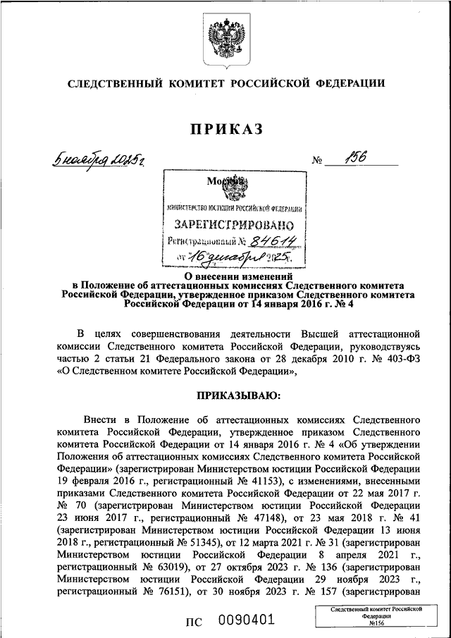 ПРИКАЗ Следственного комитета РФ от 05.11.2025 N 156