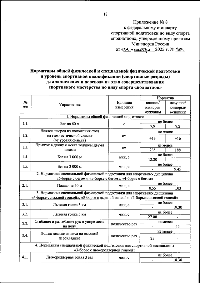 ПРИКАЗ Минспорта РФ от 14.11.2025 N 963