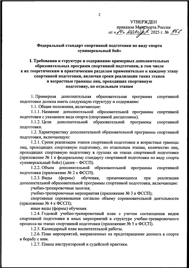 ПРИКАЗ Минспорта РФ от 14.11.2025 N 962
