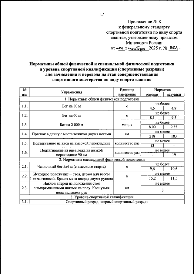ПРИКАЗ Минспорта РФ от 14.11.2025 N 961