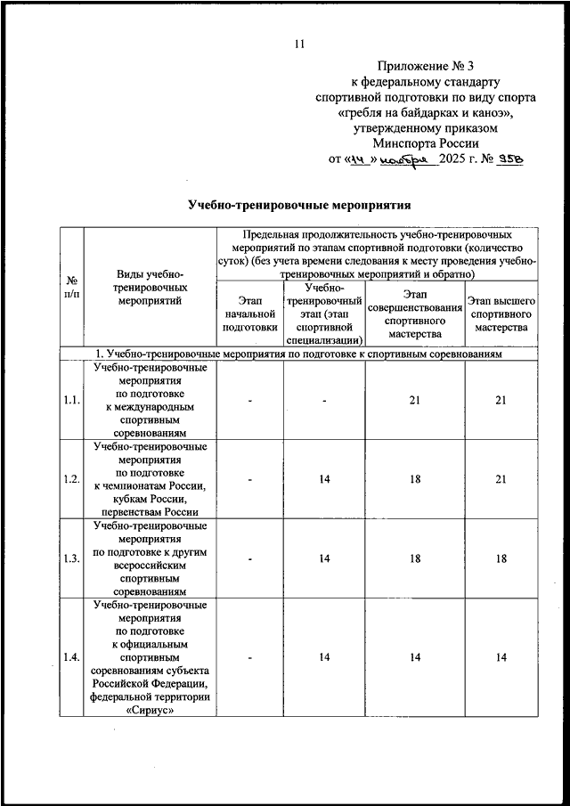ПРИКАЗ Минспорта РФ от 14.11.2025 N 958