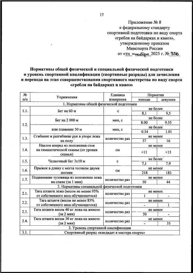 ПРИКАЗ Минспорта РФ от 14.11.2025 N 958