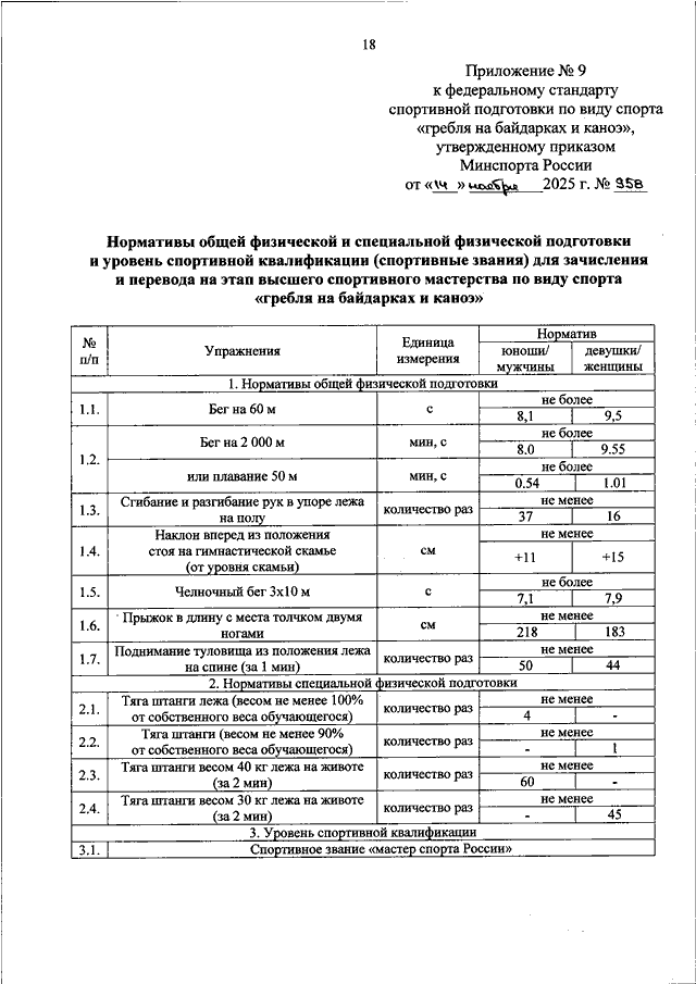 ПРИКАЗ Минспорта РФ от 14.11.2025 N 958