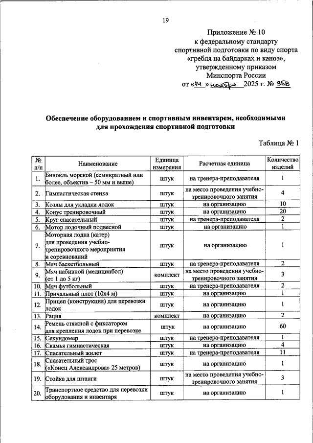 ПРИКАЗ Минспорта РФ от 14.11.2025 N 958