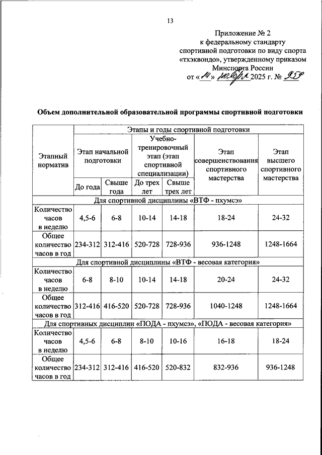 "ОБ УТВЕРЖДЕНИИ ФЕДЕРАЛЬНОГО СТАНДАРТА СПОРТИВНОЙ ПОДГОТОВКИ ПО ВИДУ СПОРТА "ТХЭКВОНДО"