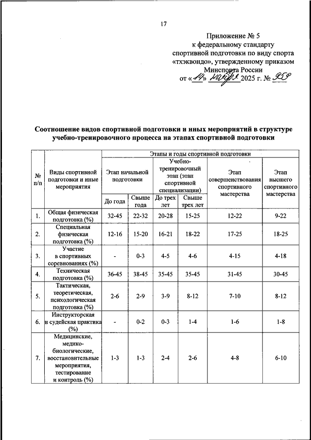"ОБ УТВЕРЖДЕНИИ ФЕДЕРАЛЬНОГО СТАНДАРТА СПОРТИВНОЙ ПОДГОТОВКИ ПО ВИДУ СПОРТА "ТХЭКВОНДО"