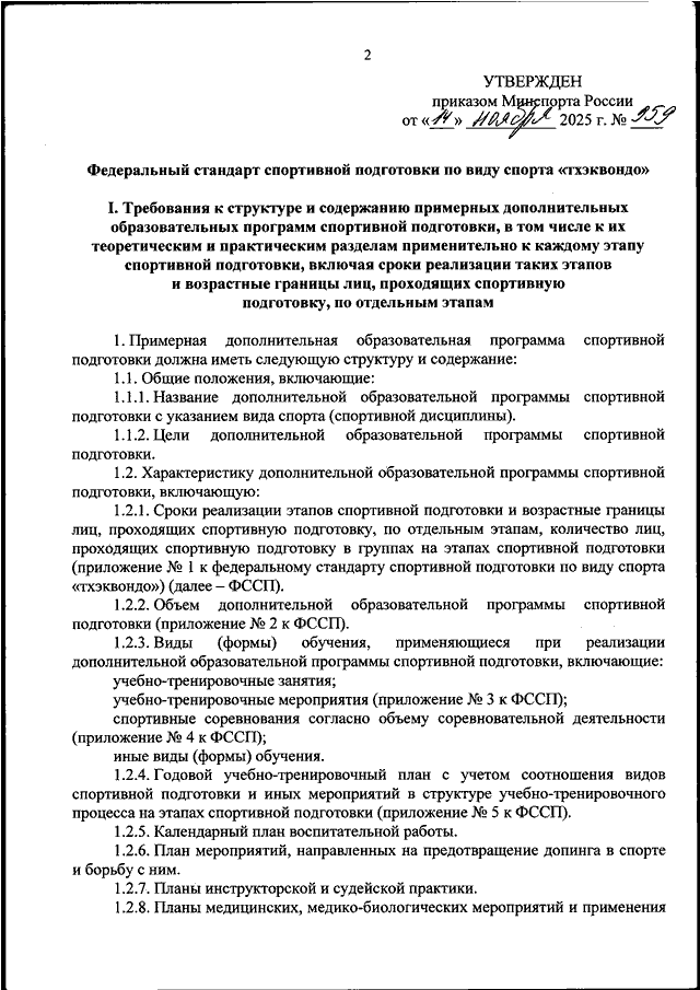 ПРИКАЗ Минспорта РФ от 14.11.2025 N 959