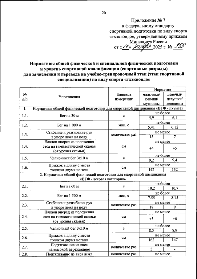 "ОБ УТВЕРЖДЕНИИ ФЕДЕРАЛЬНОГО СТАНДАРТА СПОРТИВНОЙ ПОДГОТОВКИ ПО ВИДУ СПОРТА "ТХЭКВОНДО"