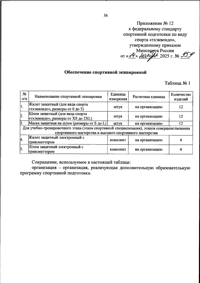 ПРИКАЗ Минспорта РФ от 14.11.2025 N 959