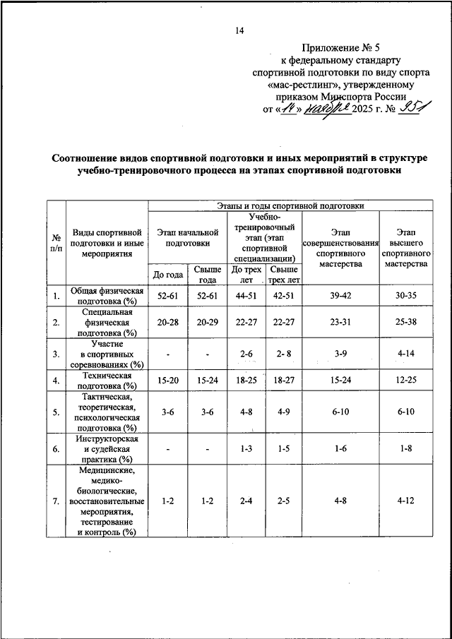 ПРИКАЗ Минспорта РФ от 14.11.2025 N 951