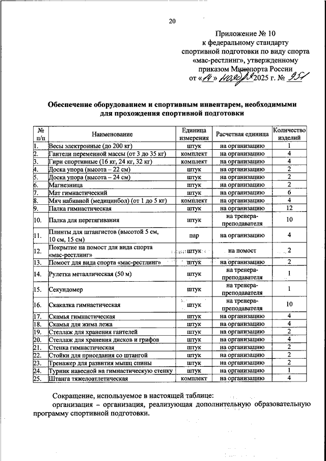 ПРИКАЗ Минспорта РФ от 14.11.2025 N 951