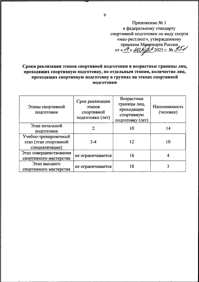 ПРИКАЗ Минспорта РФ от 14.11.2025 N 951