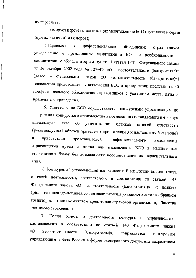 "О ПОРЯДКЕ ИЗЪЯТИЯ КОНКУРСНЫМ УПРАВЛЯЮЩИМ СТРАХОВОЙ ОРГАНИЗАЦИИ, ОБЩЕСТВА ВЗАИМНОГО СТРАХОВАНИЯ И ПЕРЕДАЧИ СТРАХОВЫМИ АГЕНТАМИ И ИНЫМИ ЛИЦАМИ, КОТОРЫМ БЫЛИ ПЕРЕДАНЫ БЛАНКИ СТРОГОЙ ОТЧЕТНОСТИ СТРАХОВОЙ ОРГАНИЗАЦИИ, ОБЩЕСТВА ВЗАИМНОГО СТРАХОВАНИЯ, КОНКУРСНОМУ УПРАВЛЯЮЩЕМУ СТРАХОВОЙ ОРГАНИЗАЦИИ, ОБЩЕСТВА ВЗАИМНОГО СТРАХОВАНИЯ БЛАНКОВ СТРОГОЙ ОТЧЕТНОСТИ СТРАХОВОЙ ОРГАНИЗАЦИИ, ОБЩЕСТВА ВЗАИМНОГО СТРАХОВАНИЯ И ИНЫХ ДОКУМЕНТОВ, СОХРАННОСТЬ КОТОРЫХ ОБЯЗАНЫ ОБЕСПЕЧИТЬ СТРАХОВАЯ ОРГАНИЗАЦИЯ, ОБЩЕСТВО ВЗАИМНОГО СТРАХОВАНИЯ, О ПОРЯДКЕ УНИЧТОЖЕНИЯ КОНКУРСНЫМ УПРАВЛЯЮЩИМ СТРАХОВОЙ ОРГАНИЗАЦИИ, ОБЩЕСТВА ВЗАИМНОГО СТРАХОВАНИЯ БЛАНКОВ СТРОГОЙ ОТЧЕТНОСТИ СТРАХОВОЙ ОРГАНИЗАЦИИ, ОБЩЕСТВА ВЗАИМНОГО СТРАХОВАНИЯ, О ПОРЯДКЕ И СРОКАХ НАПРАВЛЕНИЯ КОНКУРСНЫМ УПРАВЛЯЮЩИМ СТРАХОВОЙ ОРГАНИЗАЦИИ, ОБЩЕСТВА ВЗАИМНОГО СТРАХОВАНИЯ В БАНК РОССИИ КОПИИ ОТЧЕТА О СВОЕЙ ДЕЯТЕЛЬНОСТИ, СОСТАВЛЯЕМОГО В СООТВЕТСТВИИ СО СТАТЬЕЙ 143 ФЕДЕРАЛЬНОГО ЗАКОНА ОТ 26 ОКТЯБРЯ 2002 Г. N 127-ФЗ "О НЕСОСТОЯТЕЛЬНОСТИ (БАНКРОТСТВЕ)", О ПОРЯДКЕ ПРЕДСТАВЛЕНИЯ КОНКУРСНЫМ УПРАВЛЯЮЩИМ СТРАХОВОЙ ОРГАНИЗАЦИИ, ОБЩЕСТВА ВЗАИМНОГО СТРАХОВАНИЯ В БАНК РОССИИ БУХГАЛТЕРСКОЙ (ФИНАНСОВОЙ) И СТАТИСТИЧЕСКОЙ ОТЧЕТНОСТИ СТРАХОВОЙ ОРГАНИЗАЦИИ, ОБЩЕСТВА ВЗАИМНОГО СТРАХОВАНИЯ, А ТАКЖЕ ИНФОРМАЦИИ О ХОДЕ КОНКУРСНОГО ПРОИЗВОДСТВА ПО ЗАПРОСУ БАНКА РОССИИ"