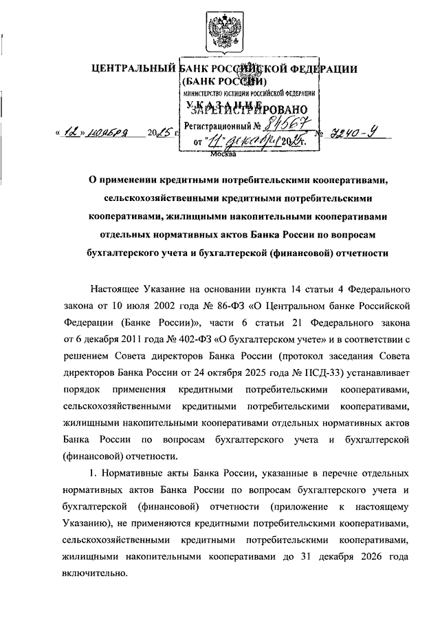 УКАЗАНИЕ ЦБ РФ от 12.11.2025 N 7240-У