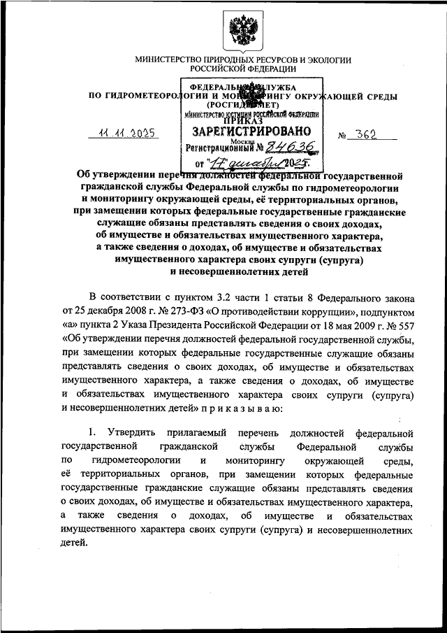 ПРИКАЗ Росгидромета от 11.11.2025 N 362