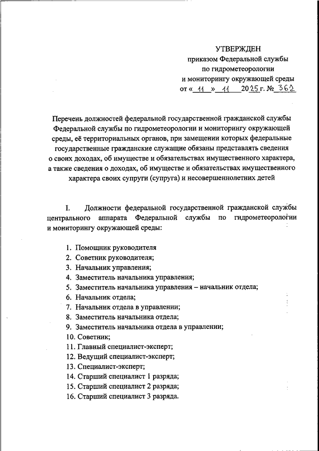 ПРИКАЗ Росгидромета от 11.11.2025 N 362