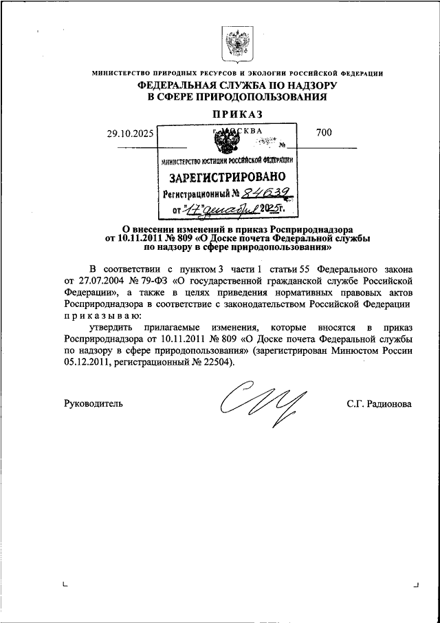 ПРИКАЗ Росприроднадзора от 29.10.2025 N 700