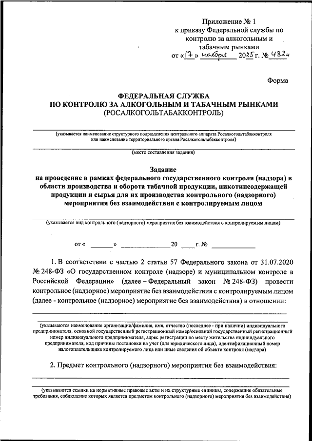 ПРИКАЗ Росалкогольтабакконтроля от 17.11.2025 N 432н