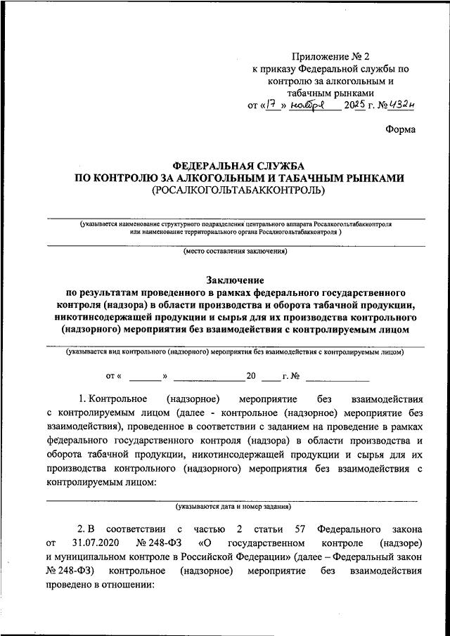 ПРИКАЗ Росалкогольтабакконтроля от 17.11.2025 N 432н