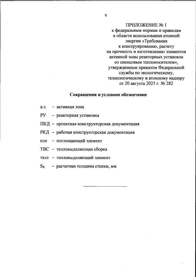 "ОБ УТВЕРЖДЕНИИ ФЕДЕРАЛЬНЫХ НОРМ И ПРАВИЛ В ОБЛАСТИ ИСПОЛЬЗОВАНИЯ АТОМНОЙ ЭНЕРГИИ "ТРЕБОВАНИЯ К КОНСТРУИРОВАНИЮ, РАСЧЕТУ НА ПРОЧНОСТЬ И ИЗГОТОВЛЕНИЮ ЭЛЕМЕНТОВ АКТИВНОЙ ЗОНЫ РЕАКТОРНЫХ УСТАНОВОК СО СВИНЦОВЫМ ТЕПЛОНОСИТЕЛЕМ" (НП-119-25)"