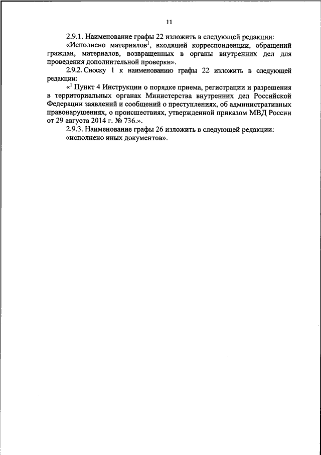 "О ВНЕСЕНИИ ИЗМЕНЕНИЙ В ИНСТРУКЦИЮ ПО ИСПОЛНЕНИЮ УЧАСТКОВЫМ