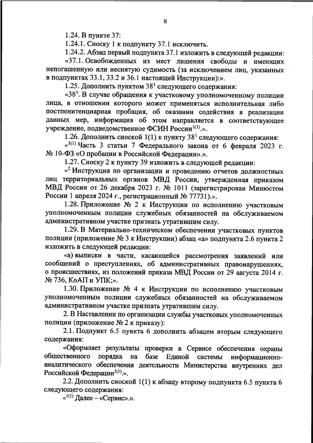 "О ВНЕСЕНИИ ИЗМЕНЕНИЙ В ИНСТРУКЦИЮ ПО ИСПОЛНЕНИЮ УЧАСТКОВЫМ УПОЛНОМОЧЕННЫМ ПОЛИЦИИ СЛУЖЕБНЫХ ОБЯЗАННОСТЕЙ НА ОБСЛУЖИВАЕМОМ АДМИНИСТРАТИВНОМ УЧАСТКЕ И НАСТАВЛЕНИЕ ПО ОРГАНИЗАЦИИ СЛУЖБЫ УЧАСТКОВЫХ УПОЛНОМОЧЕННЫХ ПОЛИЦИИ, УТВЕРЖДЕННЫЕ ПРИКАЗОМ МВД РОССИИ ОТ 29 МАРТА 2019 Г. N 205"
