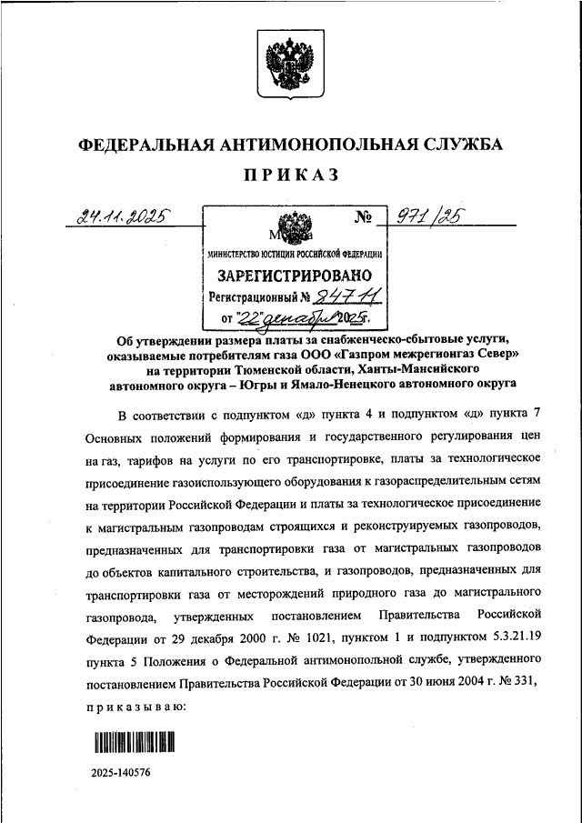 ПРИКАЗ Федеральной антимонопольной службы от 24.11.2025 N 971/25