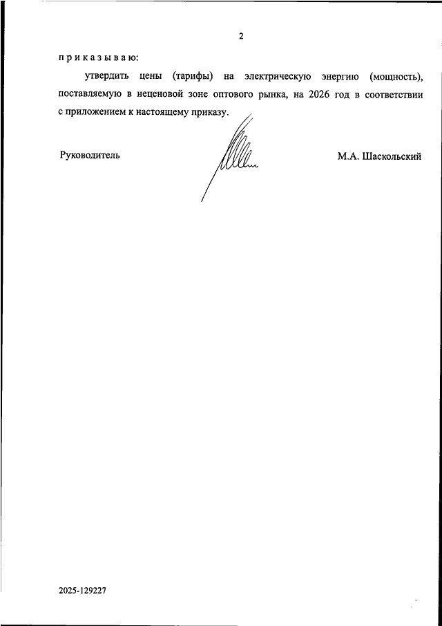 "О ЦЕНАХ (ТАРИФАХ) НА ЭЛЕКТРИЧЕСКУЮ ЭНЕРГИЮ (МОЩНОСТЬ), ПОСТАВЛЯЕМУЮ В НЕЦЕНОВОЙ ЗОНЕ ОПТОВОГО РЫНКА, НА 2026 ГОД"