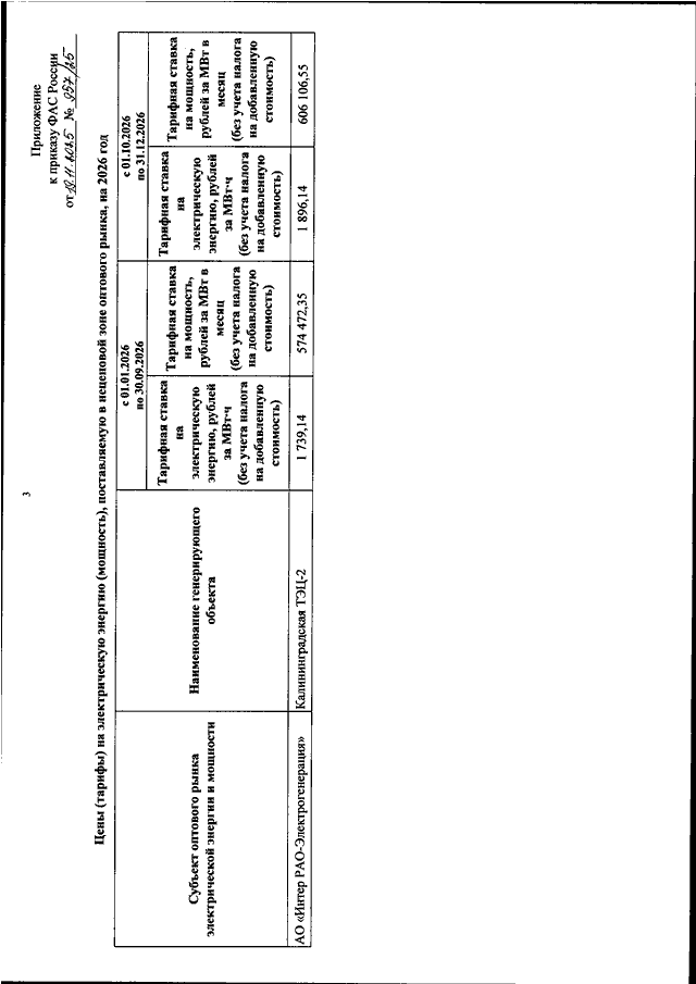"О ЦЕНАХ (ТАРИФАХ) НА ЭЛЕКТРИЧЕСКУЮ ЭНЕРГИЮ (МОЩНОСТЬ), ПОСТАВЛЯЕМУЮ В НЕЦЕНОВОЙ ЗОНЕ ОПТОВОГО РЫНКА, НА 2026 ГОД"