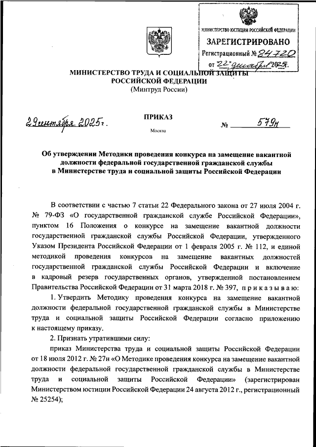 ПРИКАЗ Минтруда РФ от 29.09.2025 N 579н