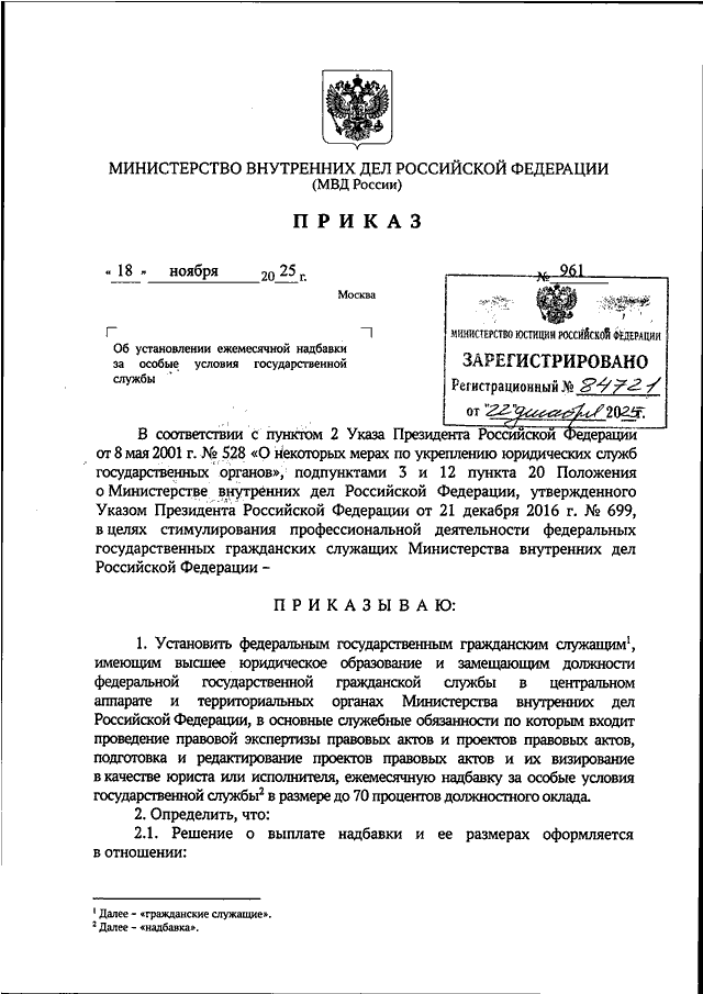 ПРИКАЗ МВД РФ от 18.11.2025 N 961