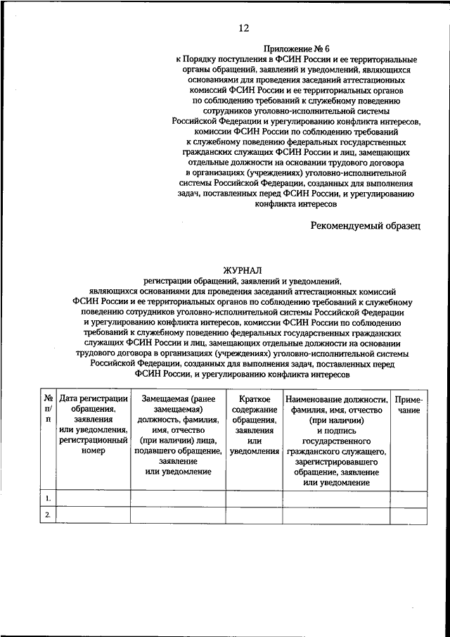 "ОБ УТВЕРЖДЕНИИ ПОРЯДКА ПОСТУПЛЕНИЯ В ФСИН РОССИИ И ЕЕ ТЕРРИТОРИАЛЬНЫЕ ОРГАНЫ ОБРАЩЕНИЙ, ЗАЯВЛЕНИЙ И УВЕДОМЛЕНИЙ, ЯВЛЯЮЩИХСЯ ОСНОВАНИЯМИ ДЛЯ ПРОВЕДЕНИЯ ЗАСЕДАНИЙ АТТЕСТАЦИОННЫХ КОМИССИЙ ФСИН РОССИИ И ЕЕ ТЕРРИТОРИАЛЬНЫХ ОРГАНОВ ПО СОБЛЮДЕНИЮ ТРЕБОВАНИЙ К СЛУЖЕБНОМУ ПОВЕДЕНИЮ СОТРУДНИКОВ УГОЛОВНО - ИСПОЛНИТЕЛЬНОЙ СИСТЕМЫ РОССИЙСКОЙ ФЕДЕРАЦИИ И УРЕГУЛИРОВАНИЮ КОНФЛИКТА ИНТЕРЕСОВ, КОМИССИИ ФСИН РОССИИ ПО СОБЛЮДЕНИЮ ТРЕБОВАНИЙ К СЛУЖЕБНОМУ ПОВЕДЕНИЮ ФЕДЕРАЛЬНЫХ ГОСУДАРСТВЕННЫХ ГРАЖДАНСКИХ СЛУЖАЩИХ ФСИН РОССИИ И ЛИЦ, ЗАМЕЩАЮЩИХ ОТДЕЛЬНЫЕ ДОЛЖНОСТИ НА ОСНОВАНИИ ТРУДОВОГО ДОГОВОРА В ОРГАНИЗАЦИЯХ (УЧРЕЖДЕНИЯХ) УГОЛОВНО - ИСПОЛНИТЕЛЬНОЙ СИСТЕМЫ РОССИЙСКОЙ ФЕДЕРАЦИИ, СОЗДАННЫХ ДЛЯ ВЫПОЛНЕНИЯ ЗАДАЧ, ПОСТАВЛЕННЫХ ПЕРЕД ФСИН РОССИИ, И УРЕГУЛИРОВАНИЮ КОНФЛИКТА ИНТЕРЕСОВ"