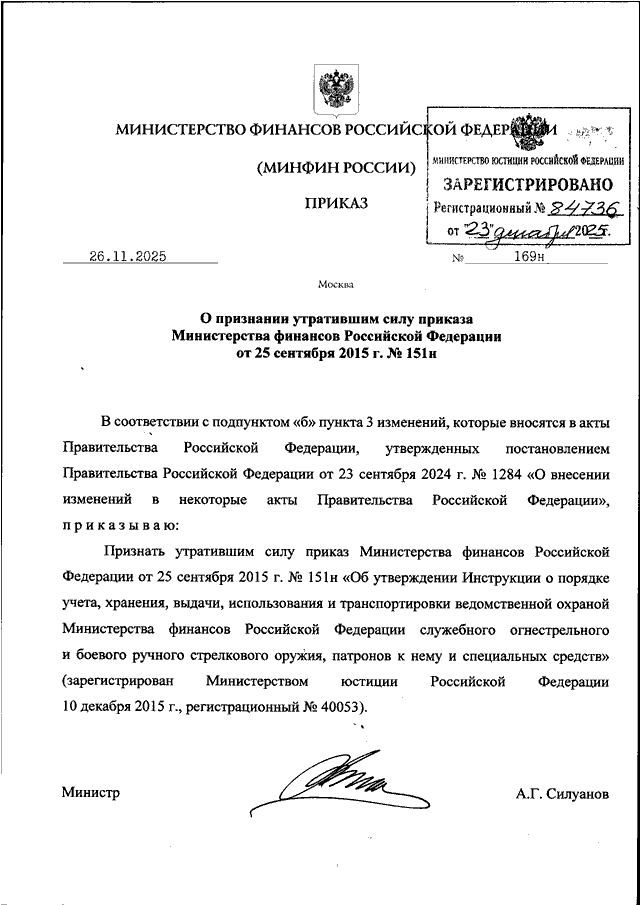 ПРИКАЗ Минфина РФ от 26.11.2025 N 169н