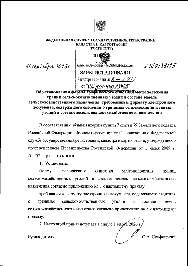 ПРИКАЗ Росреестра от 19.09.2025 N П/0339/25