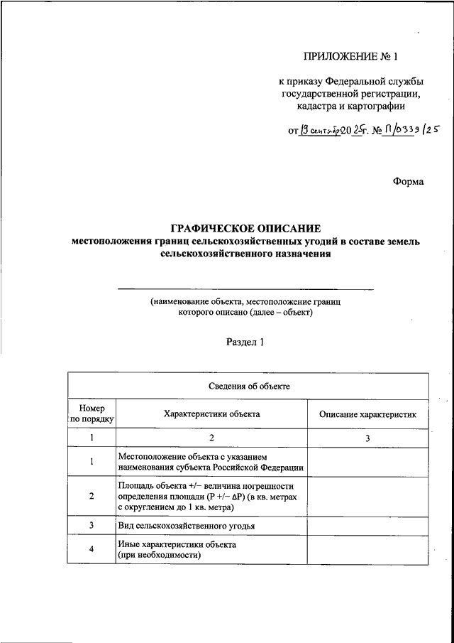 "ОБ УСТАНОВЛЕНИИ ФОРМЫ ГРАФИЧЕСКОГО ОПИСАНИЯ МЕСТОПОЛОЖЕНИЯ ГРАНИЦ СЕЛЬСКОХОЗЯЙСТВЕННЫХ УГОДИЙ В СОСТАВЕ ЗЕМЕЛЬ СЕЛЬСКОХОЗЯЙСТВЕННОГО НАЗНАЧЕНИЯ, ТРЕБОВАНИЙ К ФОРМАТУ ЭЛЕКТРОННОГО ДОКУМЕНТА, СОДЕРЖАЩЕГО СВЕДЕНИЯ О ГРАНИЦАХ СЕЛЬСКОХОЗЯЙСТВЕННЫХ УГОДИЙ В СОСТАВЕ ЗЕМЕЛЬ СЕЛЬСКОХОЗЯЙСТВЕННОГО НАЗНАЧЕНИЯ"