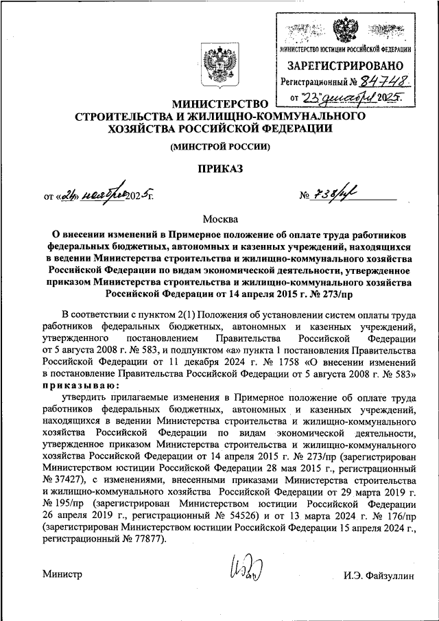 ПРИКАЗ Минстроя РФ от 24.11.2025 N 738/пр